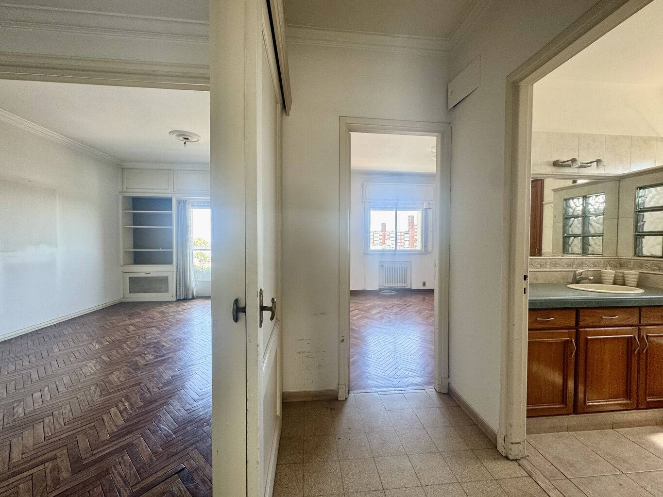 Ademas, desde la cocina se accede a habitacion con pisos de parquet y muy linda vista al Prado (Iglesia "Las Carmelitas"), la cual puede utilizarse perfectamente como tercer dormitorio o escritorio / sala de estudio.