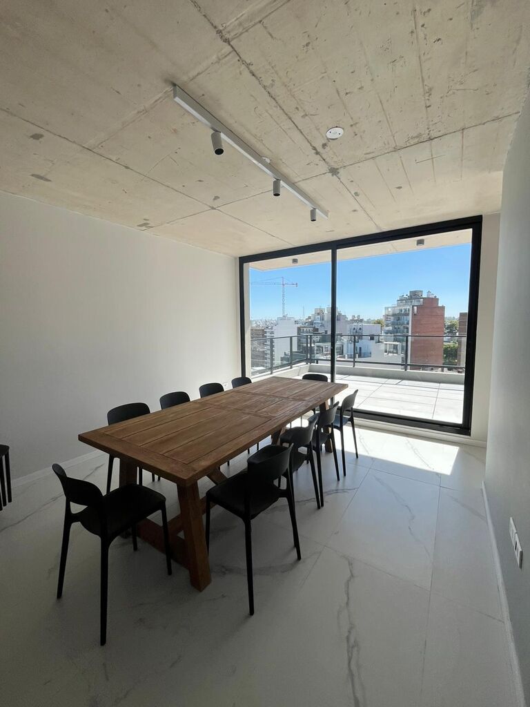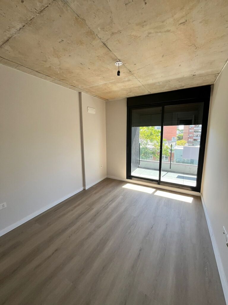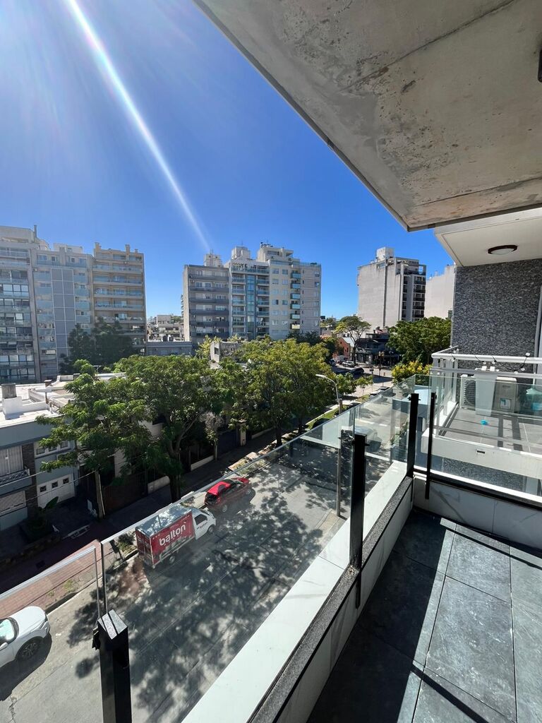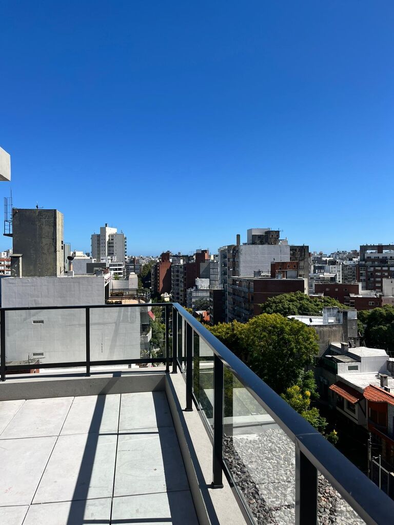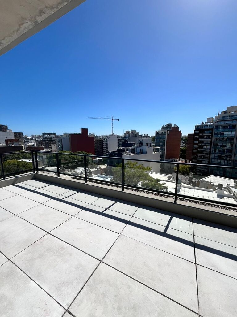 El apartamento se desarrolla con un amplio living comedor y dormitorio con placar al frente lo que hace que la terraza se desarrolle en todo el largo del apartamento con vistas panorámicas muy despejadas y arboladas.